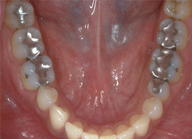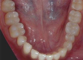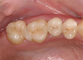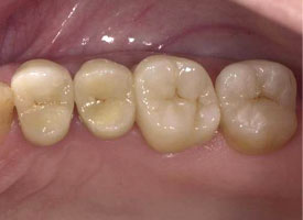 先進的な接着技術を用いて、削り出されたセラミック歯を口腔内へセットします。これで治療完了となります。